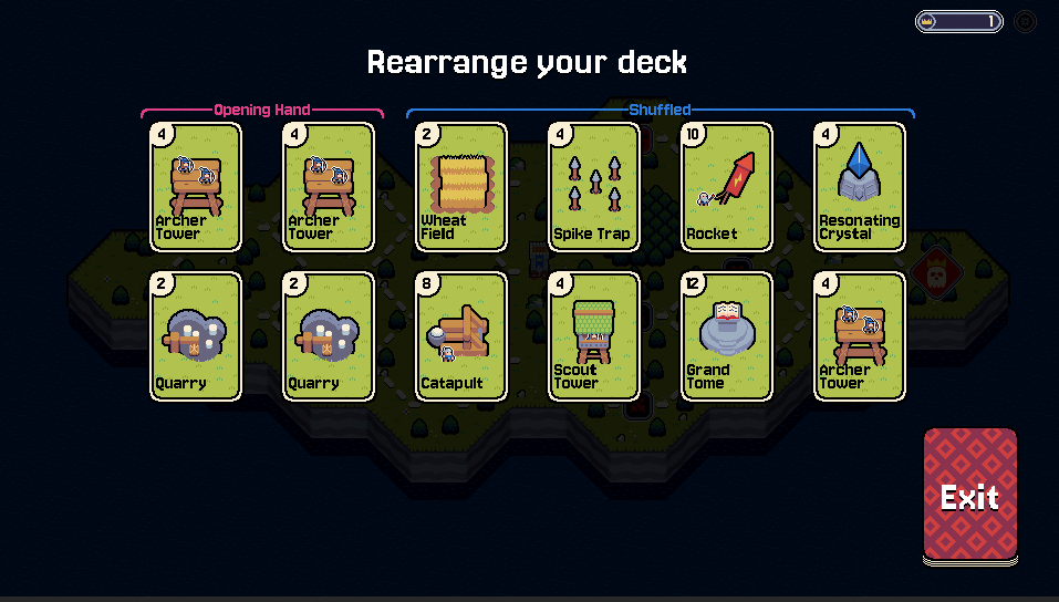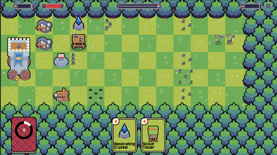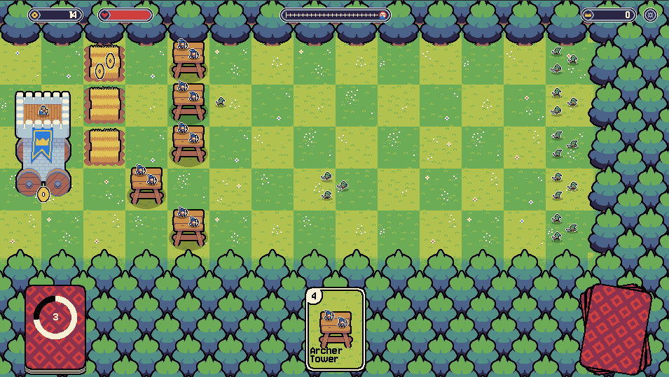 I love the concept! huge fan of deck builders and TD games. The art style is super charming. and the towers do seem to do what they need to. Unfortunately, can't seem to gather enough coins in a round to fully defend my castle. And as wheat blocks only have a single health, they're not really useful for slowing down enemies. It would be nice to be able to fully defend my castle without making necessary sacrifices.